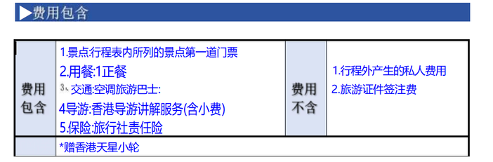 4导游:香港导游讲解服务(含小费) 5.保险:旅行社责任险 |