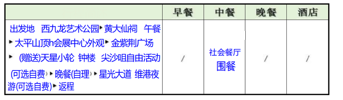 | 1.景点:行程表内所列的景点第一道门票 2.用餐:1正餐