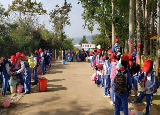 【种菜】项目内容:劳动指导老师教授同学们如何进行定株测量、浇灌、密植,学会科学种植。